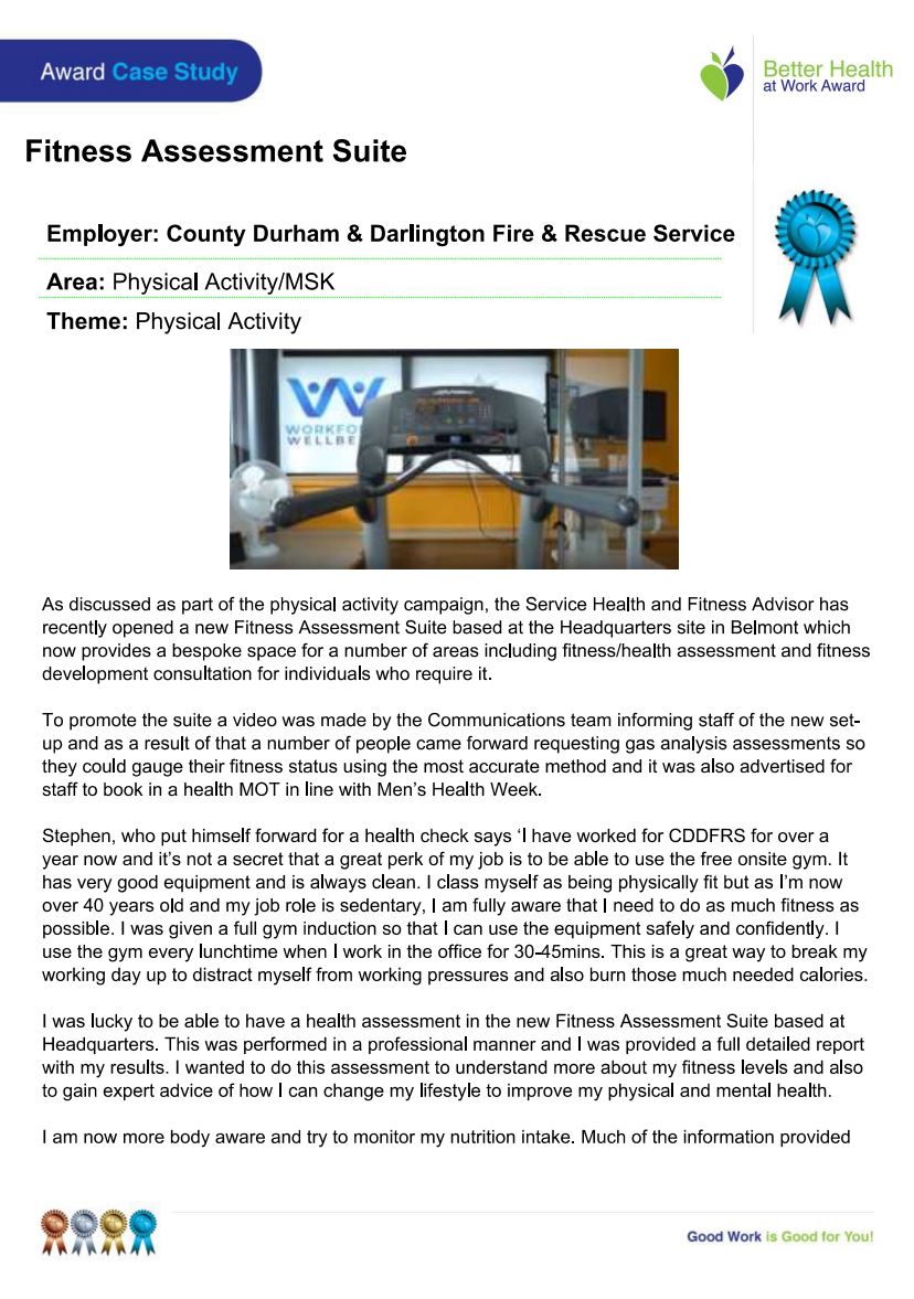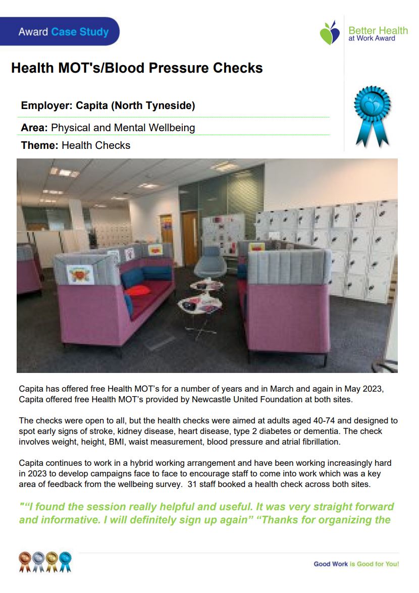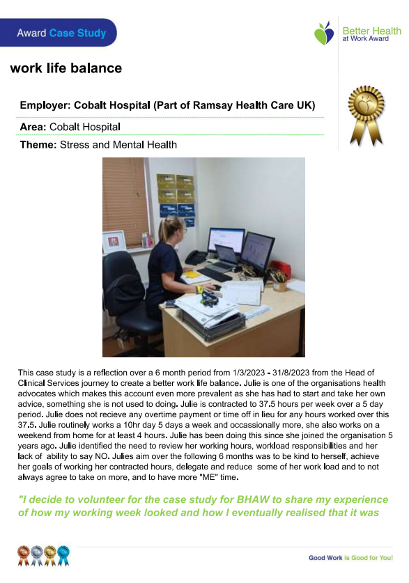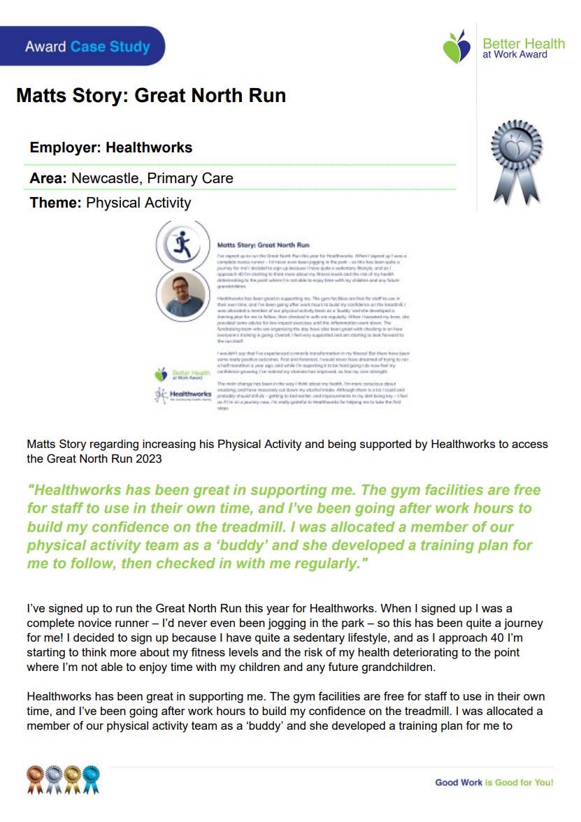 Using the Better Health at Work programme, structure and guidance, the organisation has introduced a number of ways to improve individuals’ physical and mental health; whilst encouraging employees to take responsibility themselves".