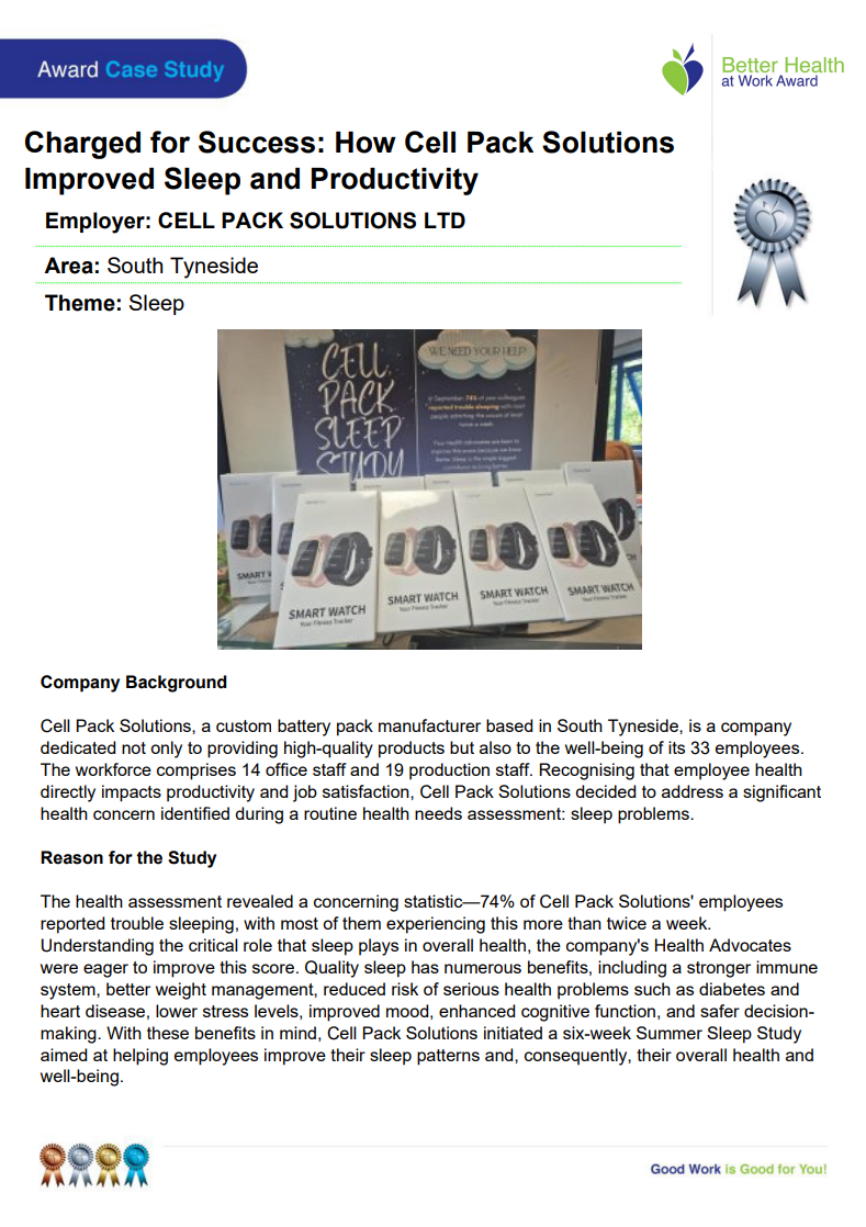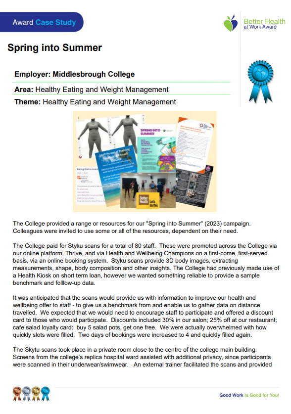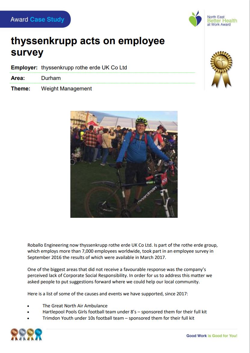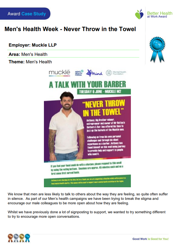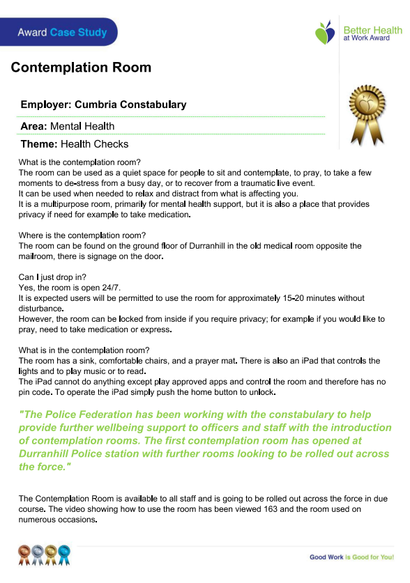 Using the Better Health at Work programme, structure and guidance, the organisation has introduced a number of ways to improve individuals’ physical and mental health; whilst encouraging employees to take responsibility themselves".