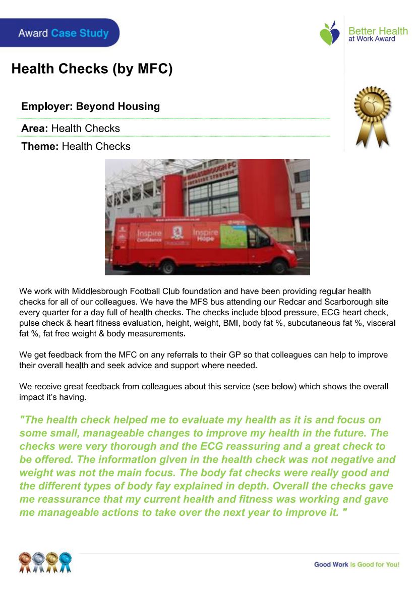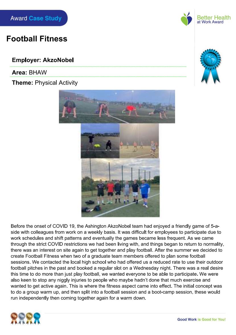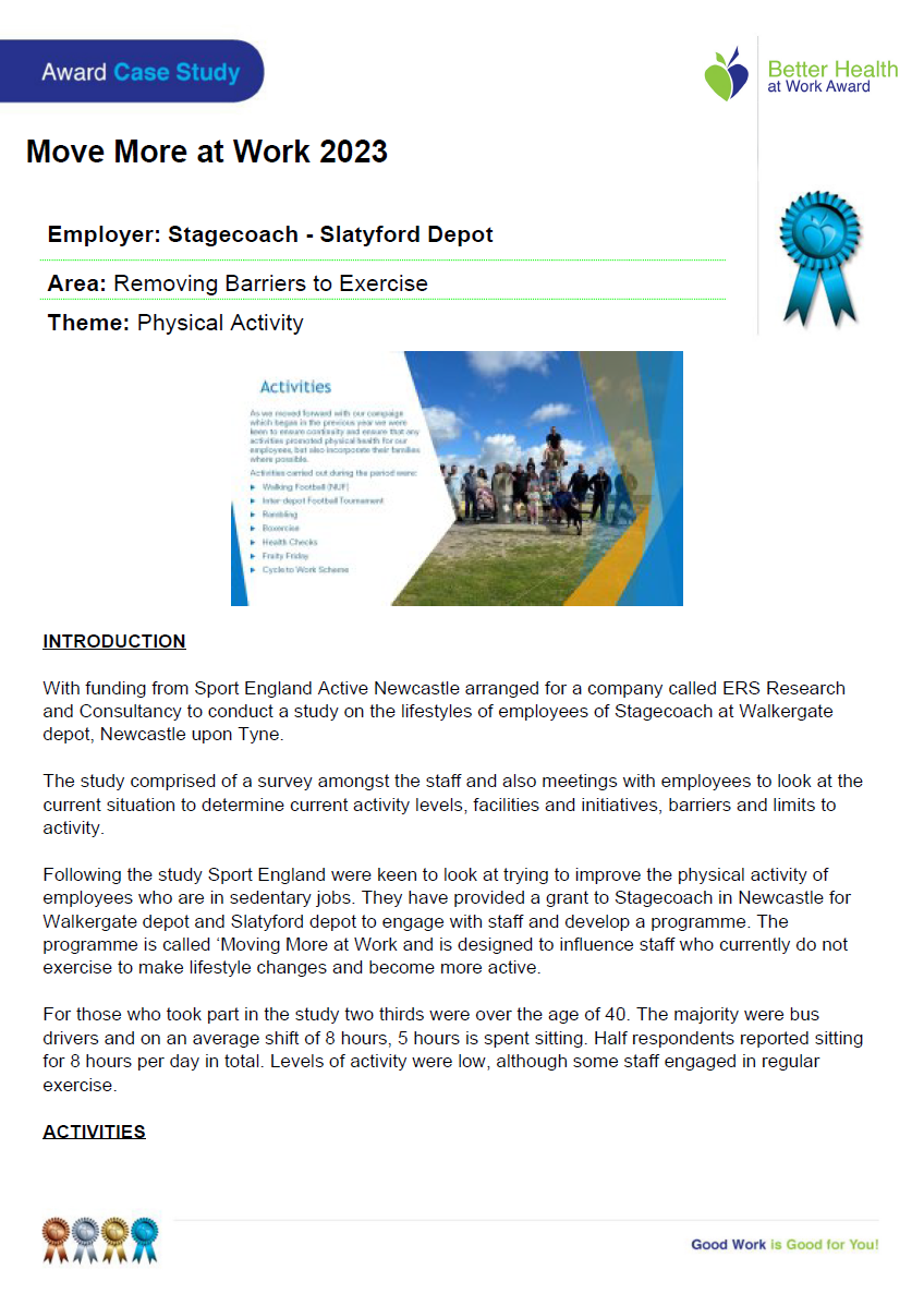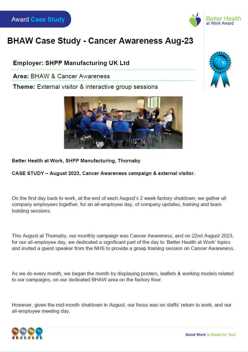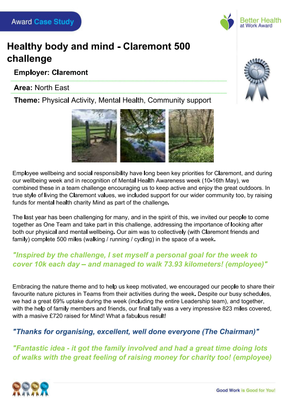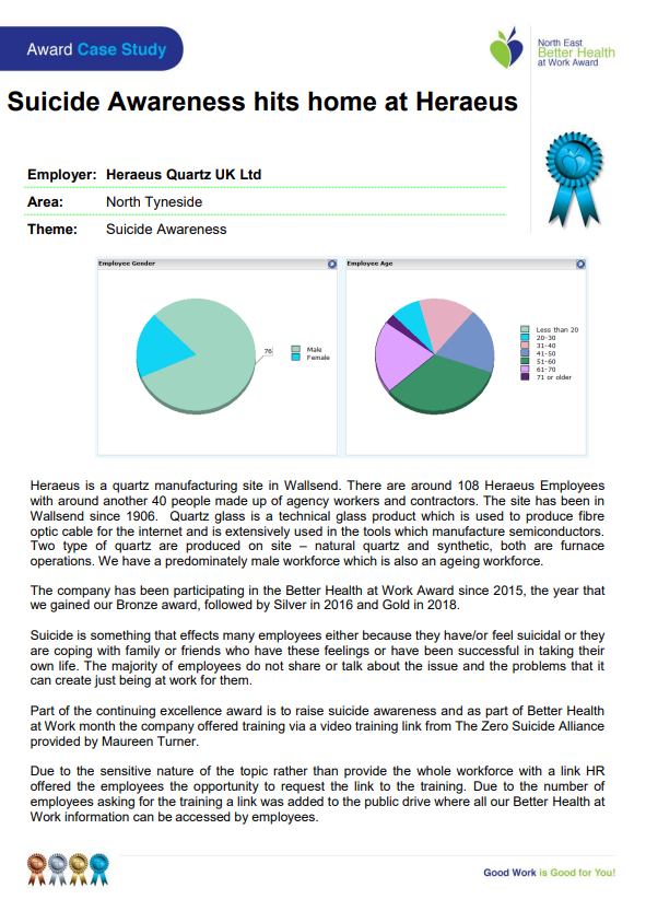 We chose to participate in the award programme as it is providing us with a structured and planned schedule of events and initiatives that supports our overarching health and wellbeing strategy and objectives. It is a key strand to use providing a holistic approach to our employees’ health and wellbeing.