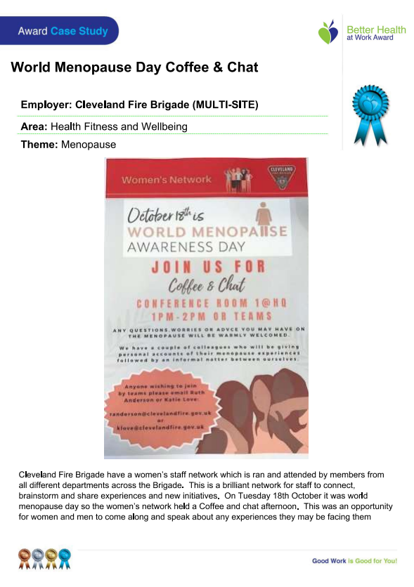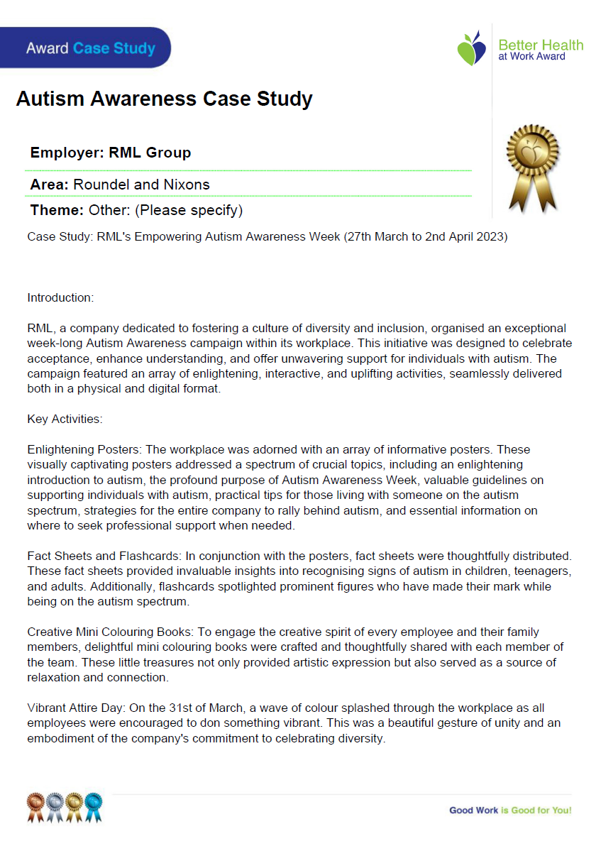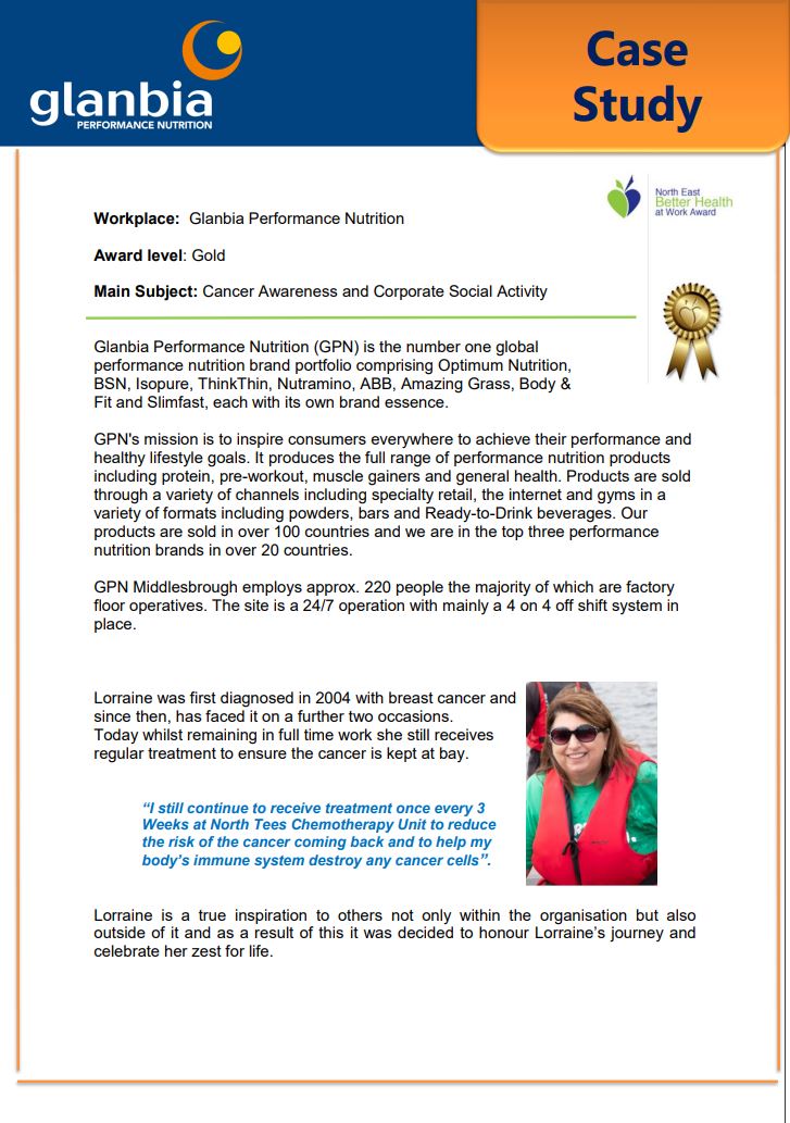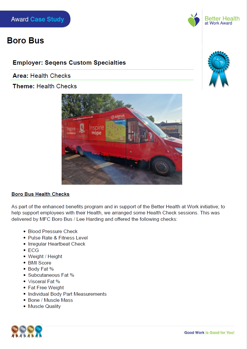 The award programme has provided us with key benefits including pointers in data gathering, event planning and networking opportunities. The monthly health advocate meetings are invaluable in providing information on what local support is available to enable us to build up our calendar of events and provide relevant and engaging content to our employees on a variety of health topics.