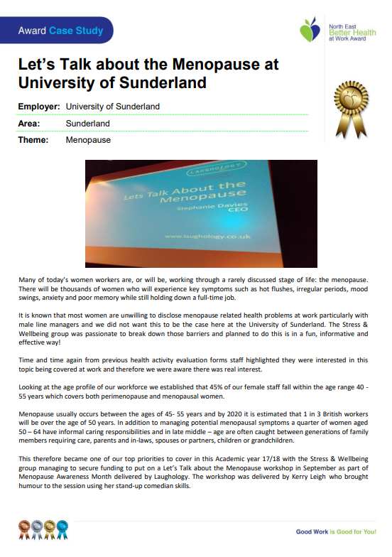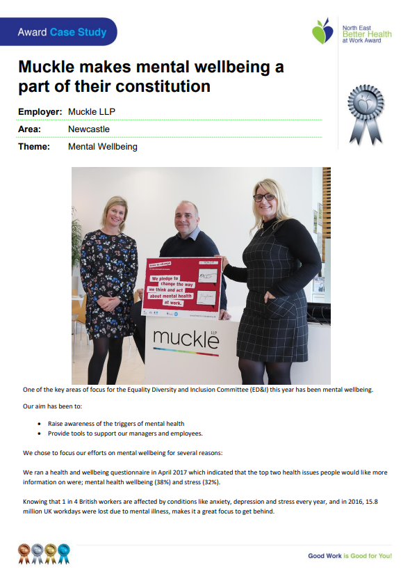 The award enabled Nexus to gain recognition as an exceptional organisation in offering health and wellbeing support for staff and be recognised as an ambassador for other organisations in the North East".