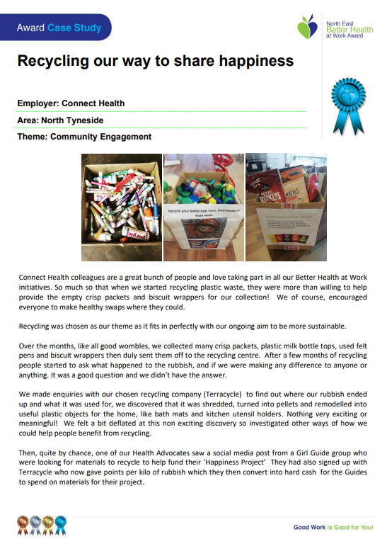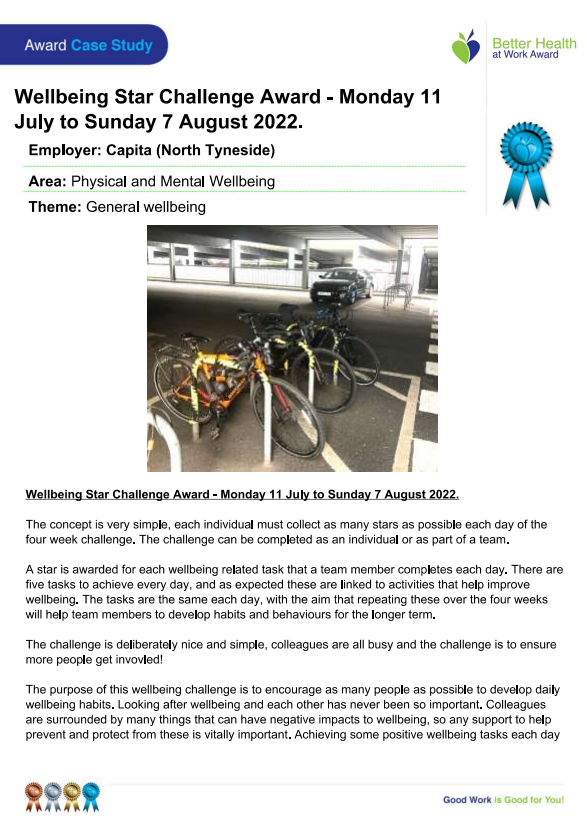 We participated to provide a further structure, focus and sustainable framework to our wellbeing programme.